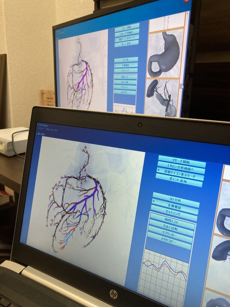 次世代未病&健康測定器「メタトロン細胞ナノセラピー」を使って全身をスキャニング、全身800カ所の個別評価によりMRIや人間ドックでも捉えきれない細かな兆候がわかります。